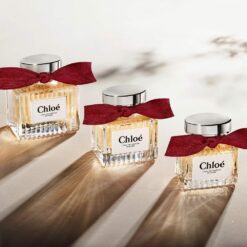 Un flacon iconique revisité, orné d’un ruban beige rosé, à l’image du chic intemporel de Chloé